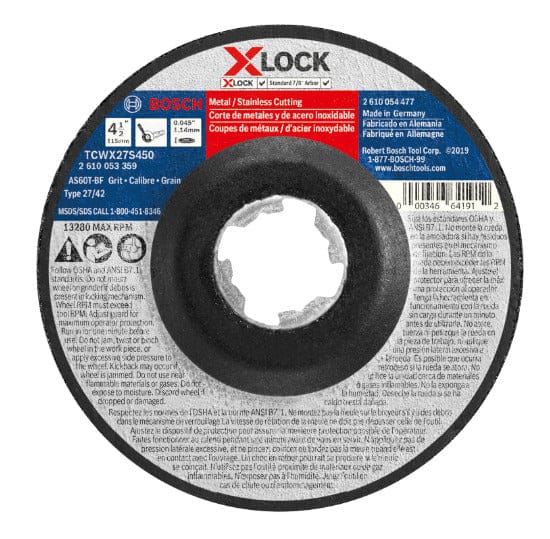 Bosch TCWX27S450 4 1/2" x .045" X-LOCK Arbor Type 27a (ISO 42) 60 Grit Fast Metal/Stainless Cutting Abrasive Wheel