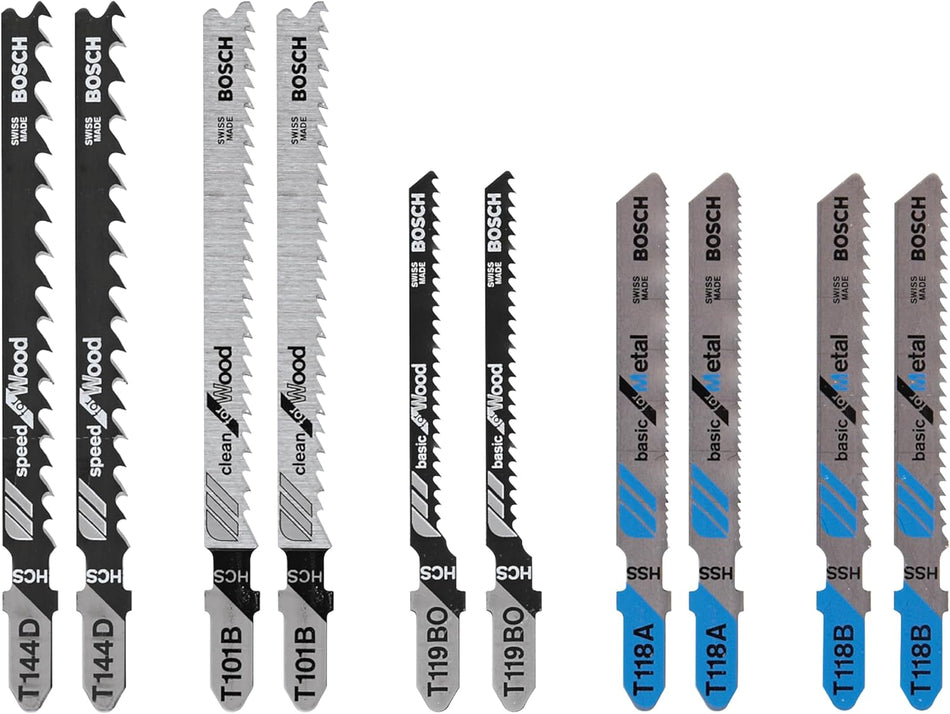 BOSCH T5002 T-Shank Multi-Purpose Jigsaw Blades, 10 Piece, Assorted, Jig Saw Blade Set for Cutting Wood and Metal