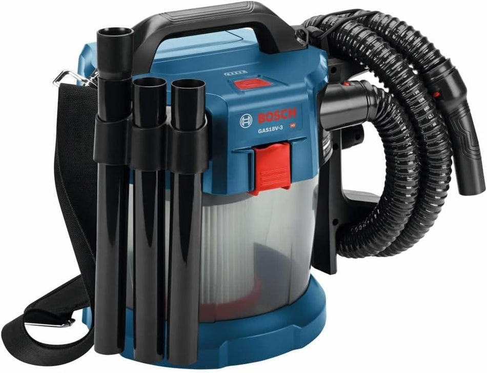 Bosch Cordless Wet/Dry Vacuum Cleaner (Bare Tool) GAS18V-3N 18V 2.6-Gallon Capacity HEPA Filter Compact Lightweight Design Full Attachment Kit