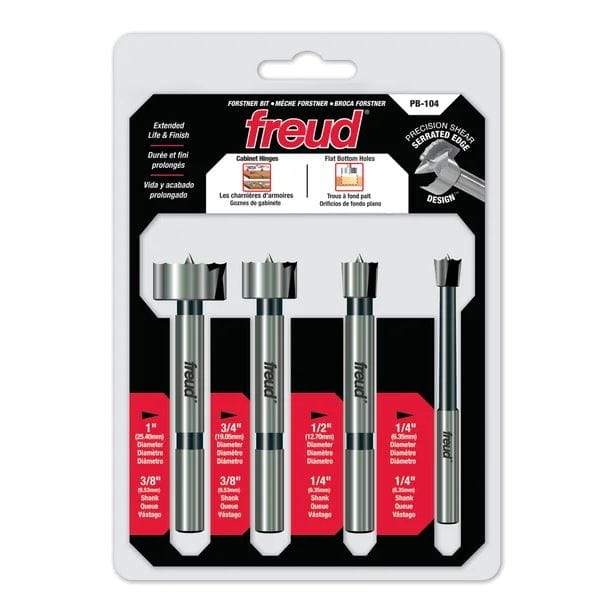 Freud 7-Piece Carbide Forstner Bit Set FC-107 Clean Pocket Hole Drilling Flat Bottom Boring Veneer Safe Titanium Tips Wood Case