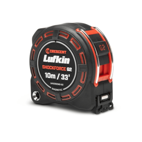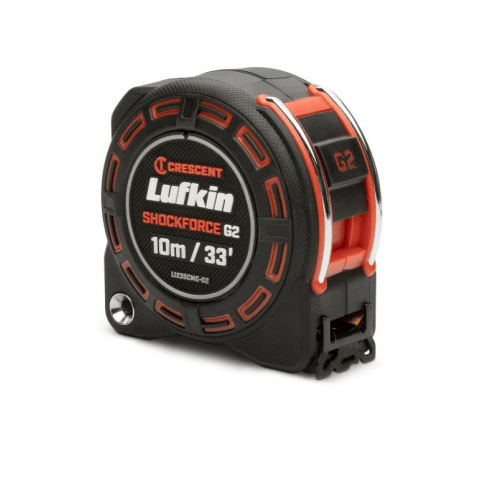 Crescent Lufkin Shockforce G2 33-Foot Tape Measure 1-1/4" Wide Blade Diamond-Coated Hook SAE/Metric Dual-Sided Tether-Ready Heavy-Duty Case