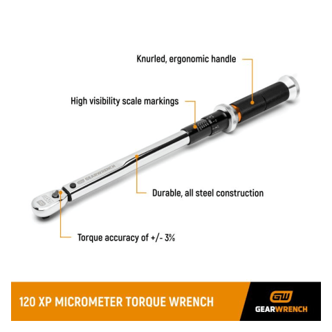 Ultimate Precision in Tight Spaces: GearWrench 120XP 3/8" Drive Micrometer Torque Wrench (30-250 in/lbs)