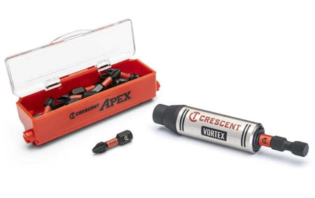 Tired of snapping bits and losing valuable time on the job site? The revolutionary Crescent Apex VORTEX Bit Holder Kit (CAVBH1PH2-15) is engineered to solve your biggest problem, extending the life of your driver bits by over 500 times compared to standard holders. At the core of this system is the exclusive Dual Impact Zoneâ„¢ technology, which proactively prevents bit breakage and absorbs the destructive shock generated by high-torque impact drivers. This holder is the professional contractor's secret weapon, maximizing performance and keeping your productivity high in demanding, heavy-use applications.