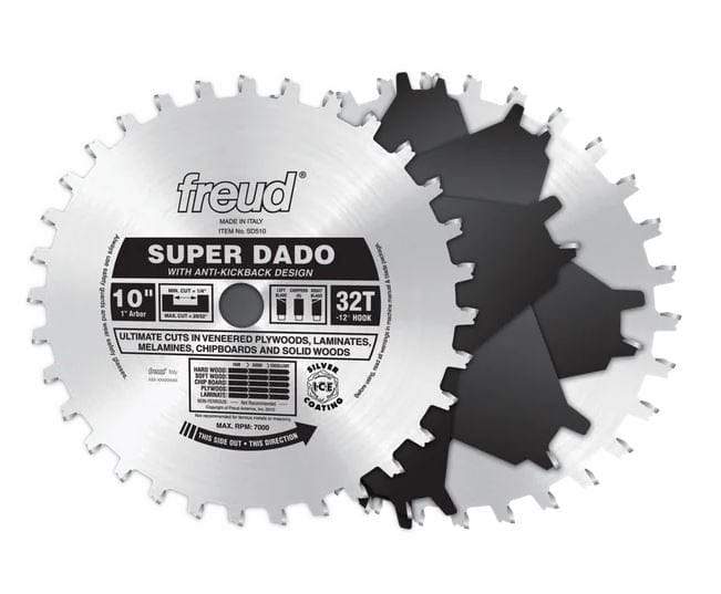Freud Super Dado Sets with Premium Tico Hi-Density Carbide Crosscutting Blend for Maximum Performance - 10" Diameter, 32 Teeth, 1" Arbor - SD510