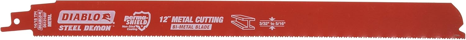 Diablo 25-Pack 12-Inch 14/18 TPI Bi-Metal Reciprocating Saw Blades DS1214BF-25 for Medium Metal Cutting Full Contact Arched Design