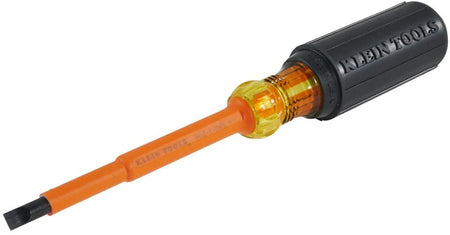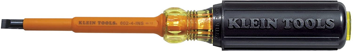 Klein 1/4-Inch Keystone Slotted Screwdriver 602-4 4-Inch Round Shank with Cushion-Grip Handle Precision Tip and Tip-Ident for Electricians